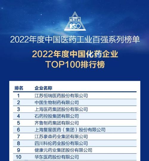 佳音频传!6163银河医药再次蝉联中国化药企业百强榜首